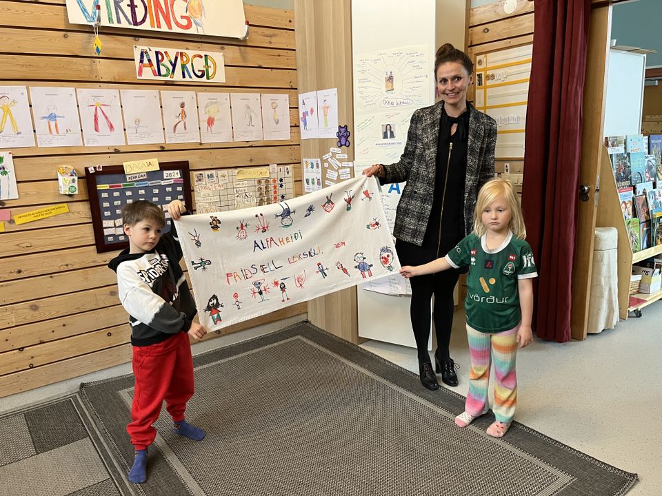 Börnin sungu nokkur lög fyrir bæjarstjórann, meðal annars frumsamda lag elstu barnanna,,Sól á Tene og færðu henni fallegan borðdúk sem þau höfðu sjálf útbúið. Bæjarstjórinn ætlar að hafa dúkinn á skrifstofunni sinni og bauð börnunum að koma í heimsókn til sín með hækkandi sól.
