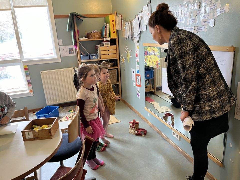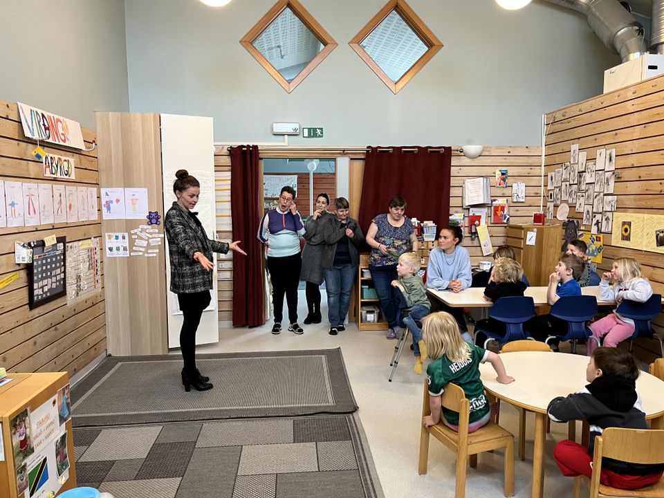 Ásdís Kristjánsdóttir bæjarstjóri Kópavogs kom í heimsókn til okkar í gær. Hún skoðaði leikskólann og svaraði spurningum barnanna.