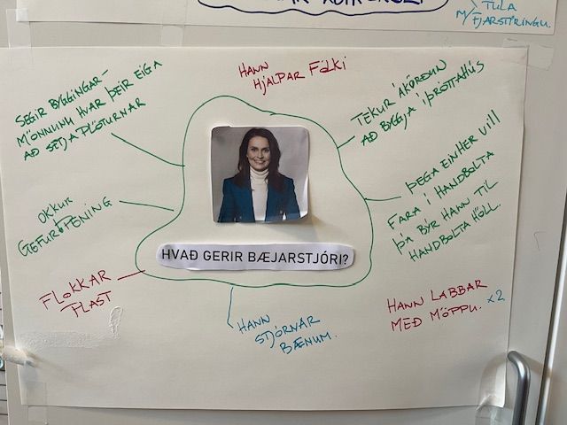 Fyrir heimsóknina höfðu börnin verið að velta fyrir sér hlutverki bæjarstjóra og hún svaraði bráðskemmtilegum vangaveltum þeirra af bestu getu.