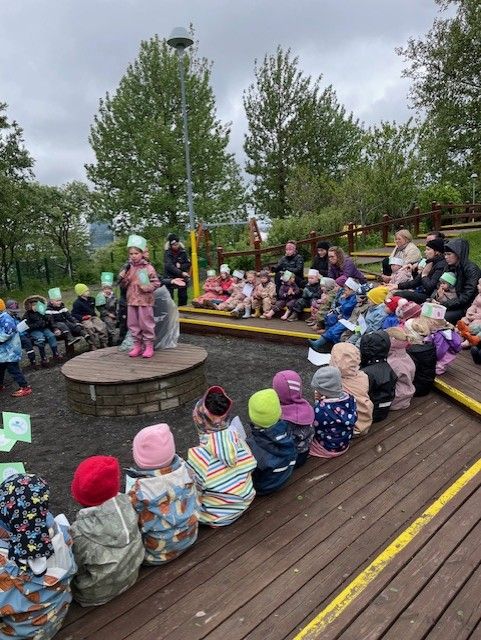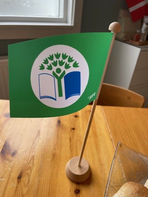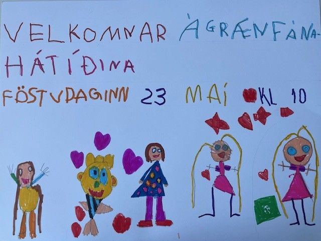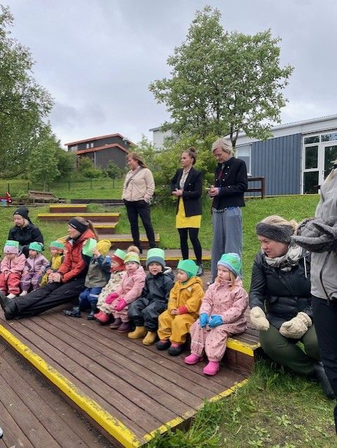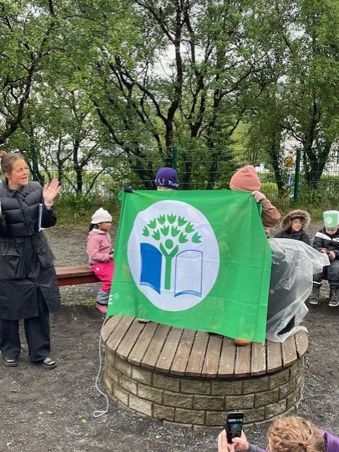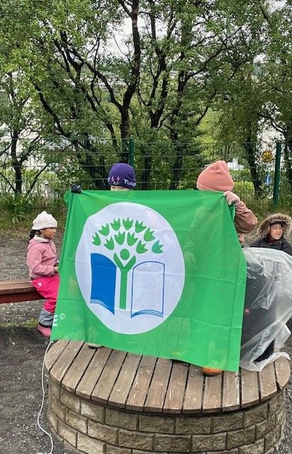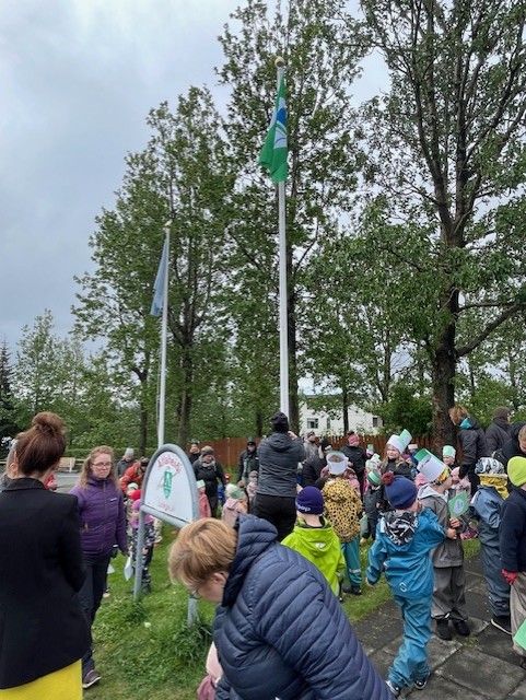 Í dag afhenti fulltrúi Landverndar okkur 9. Grænfánann en hann er alþjóleg viðurkenning fyrir góða frammistöðu í menntun til sjábærni og fyrir að leggja sitt af mörkum til þess að efla og bæta umhverfismál innan skólans og í nærsamfélaginum. Elstu börnin sáu um athöfnina og sendu borðskort til Ásdísar bæjarstjóra og fulltrúa leikskóladeildar. Að lokinni athöfn var boðið upp á brauðbollur og kakó.